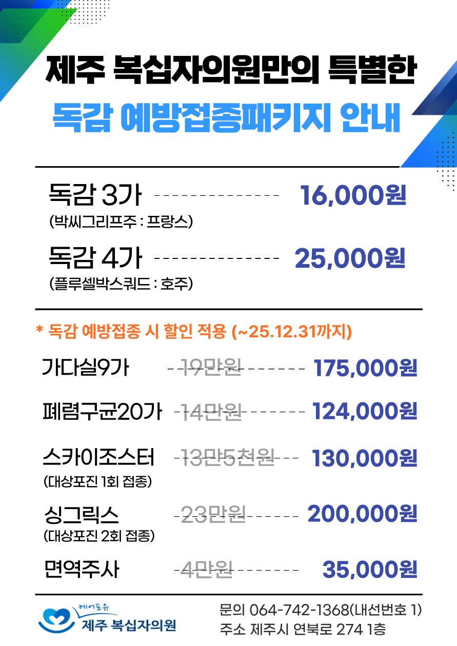 공지 독감 예방접종 할인패키지 운영(12월 31일까지)